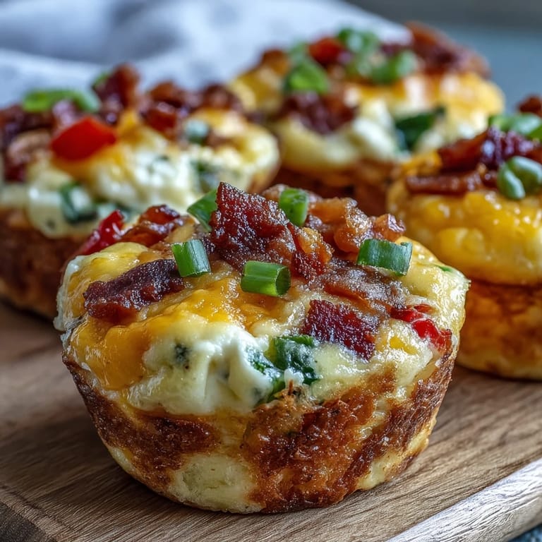 Pin it Sunday mornings used to mean chaos in our kitchen—three people heading three different directions, nobody with time to sit. I started baking these egg muffins in a single tin on autopilot, and suddenly breakfast became something we could grab warm from the counter. The smell of melted cheddar and crispy bacon filling the house made even the earliest risers pause for a second bite. Now I double the batch every week and stash half in the freezer, because some mornings you just need food that loves you back.